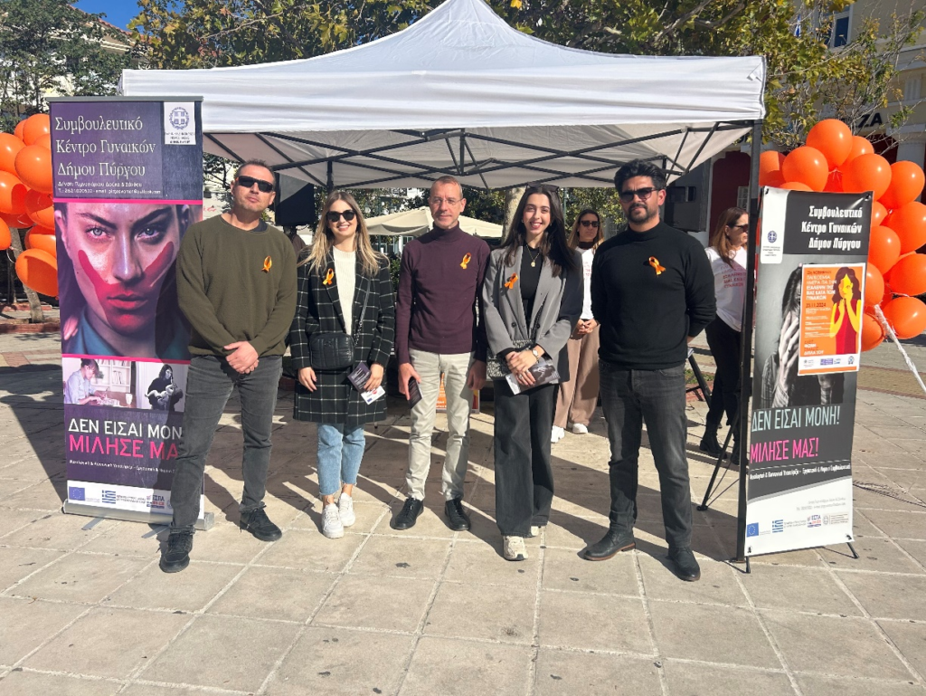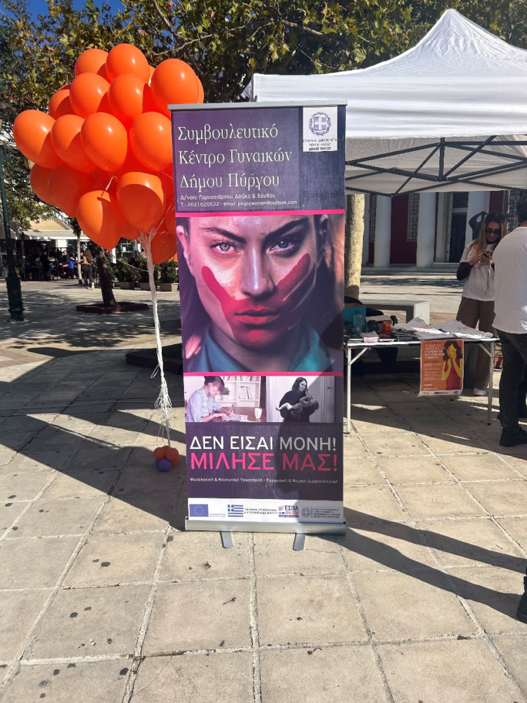 Την Δευτέρα 25/11/2024 με αφορμή την Παγκόσμια Ημέρα Εξάλειψης της Βίας κατά των Γυναικών, μέλη του Κέντρου Ημέρας Π.Ε. Ηλείας παιδιών, εφήβων και νέων ενηλίκων με Διαταραχές Αυτιστικού Φάσματος του Σωματείου ΙΚΕΛΟΣ επισκέφθηκαν το κιόσκι του Συμβουλευτικού Κέντρου Γυναικών Δήμου Πύργου στην κεντρική πλατεία Σάκη Καράγιωργα. Στην συνάντηση αυτή τα μέλη της διεπιστημονικής ομάδας του Κέντρου Ημέρας είχαν την ευκαιρία να συνομιλήσουν με το επιστημονικό προσωπικό του Συμβουλευτικού Κέντρου και να συζητήσουν για την έξαρση της έμφυλης βίας, καθώς και για το πως μπορούν φορείς και κοινοτικές δομές να συμβάλουν στην καταπολέμηση του φαινομένου.
