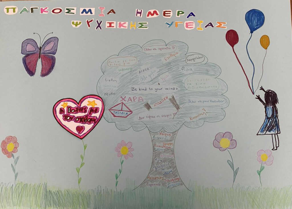 Με αφορμή την Παγκόσμια Ημέρα Ψυχικής Υγείας, οι ωφελούμενοι του Κέντρου Ημέρας Παιδιών και Εφήβων του Σωματείου Ίκελος, μαζί με τους θεραπευτές τους, δημιούργησαν ένα κολάζ αφιερωμένο στη φροντίδα της ψυχής και του νου.